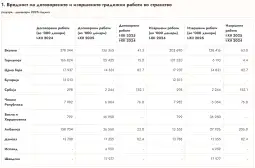 - Вкупната вредност на договорените градежни работи во странство лани изнесува 156 365 илјади денари, што е за 58.7 проценти помалку во споредба со истиот период од претходната година. Во 2025 година градежната оператива од државава во странство извршила градежни работи во вкупна вредност од 128 416 илјади денари, што е за 37 проценти помалку во споредба со истиот период од претходната година.