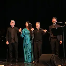 - Dy nga tre bashkëpunëtorët e mi me të cilët do të performojmë në Shkup kanë bashkëpunuar me Teodorakisin dhe e kanë njoftuar. Ahileas Guastor, pianist, aranzhues dhe kompozitor, Lefteris Grivas i cili është anëtar i vjetër i orkestrës së Mikisit, Dimitris Kufojorgos i cili luan buzuki dhe mandolinë. Jam i lumtur që bashkëpunoj me këta njerëz, jam me të vërtetë me fat. Dhe ata më mbështesin, por ajo që është me të vërtetë e rëndësishme është se ata e duan muzikën e Mikisit.