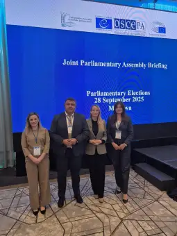 Shkup, 29 shtator 2025 (MIA)- Një delegacioni në Asamblenë parlamentare të OSBE-së (AP e OSBE-së) i përbërë nga: Monika Zajkova, kryetare e Delegacionit; Nikolla Micevski dhe Mimoza Musa, anëtarë; dhe Marija Petrushevska, kryetare e Delegacionit në Asamblenë Parlamentare të Këshillit të Evropës (AP e KE-së), po marrin pjesë në Misionin Ndërkombëtar për Vëzhgim të Zgjedhjeve në Moldavi, të cilat mbahet më 28 shtator 2025.