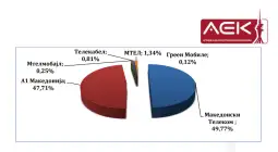 Në vend ka 681,997 abonentë pri-paid rezidencialë dhe 1,010,947 abonentë post-paid, si dhe 249,052 abonentë post-paid biznesi. Në të ardhurat nga ofrimi i shërbimeve të komunikimit celular (niveli i shitjes me pakicë) në tre muajt e parë të këtij viti, Telekomi i Maqedonisë ka një pjesëmarrje prej 49.77, A1 Maqedoni prej 47.71 për qind, MTEL, 1.34 për qind, Telekabel, 0.81 për qind, Mtelmobile, 0.25 për qind, Green Mobile, 0.12 për qind.