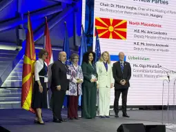 Budapest, 5 nëntor 2025 (MIA)- Zëvendësministrja e Mjedisit Jetësor dhe Planifikimit Hapësinor, Ane Lashkoska, dhe zëvendësministri i Shëndetësisë, Jovica Andovski, morën pjesë në segmentin e nivelit të lartë të Sesionit të Shtatë të Palëve të Protokollit për Ujë dhe Shëndetësi, i organizuar bashkërisht nga Komisioni Ekonomik i Kombeve të Bashkuara për Evropën (UNECE) dhe Zyra Rajonale e Organizatës Botërore të Shëndetësisë për Evropën (WHO/Europe) me ftesë të Qeverisë së Hungarisë.