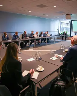 Në kuadër të vizitës së punës në Hagë, ministri Mucunki, ë bashku me drejtorin e Drejtorisë për zonat zhvillimore teknologjike industriale, Goce Dimovski, para biznesmenëve holandezë në Agjencinë holandeze për sipërmarrëis i prezantoi mundësitë investuese që i ofron vendi në në funksion të tërheqjes së investimeve të reja holandeze. ab/