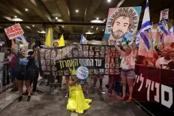 Skenat jashtë ndërtesës së KB-së ishin po aq të tensionuara. Familjet e pengjeve izraelite u mblodhën atje, duke kërkuar një marrëveshje për lirimin e tyre, ndërsa kundërshtarët e ofensivës izraelite mbanin pankarta që bënin thirrje për t'i dhënë fund luftës.