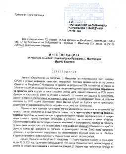 "Interpelancën e bazojmë në indikacionet, faktet dhe konstatimet ligjore në vijim: hetime selektive penale për tragjedinë në Koçan, ndikime logjistike në punën e Prokurorisë Publike, kaos funksional në Prokurorinë e Lartë Publike-Shkup, mosveprim në përputhje me detyrën zyrtare në lidhje me ndërtimet e paligjshme të mafies urbane në Shkup", thuhet në interpelancën e publikuar në ueb-faqen e Parlamentit.