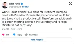 Sipas tij, një funksionar i Shtëpisë së Bardhë deklaroi: "Për momentin nuk ka plane për një takim midis presidentit Tramp dhe presidentit Putin. Rubio dhe Lavrovi patën një bisedë telefonike produktive. Prandaj, nuk është i nevojshëm një takim shtesë personal midis sekretarit amerikan të shtetit dhe ministrit për Punë të Jashtme.