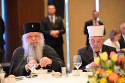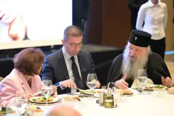 Скопје, 8 април 2026 (МИА) - Велигденски ручек во организација на премиерот Христијан Мицкоски се одржа денеска во хотелот Хилтон, на кој меѓу другите присуствуваа претседателката Гордана Сиљановска Давкова, поглаварот на МПЦ-ОА, архиепископот Стефан, поглаварот на ИВЗ, Шаќир Фетаи, министри во Владата, пратеници, градоначалници, претставници на медиумите.