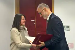 Скопје, 18 февруари 2026 (МИА) - Министерството за односи меѓу заедниците денеска го одбележа Меѓународниот ден на мајчиниот јазик - 21 Февруари и им додели благодарници на Институтот за македонски јазик „Крсте Мисирков“ и НУ Музеј на албанската азбука, како и на наставници што предаваат на јазиците на помалите етнички заедници во Македонија.
