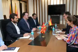 Skopje, 5 August 2025 (MIA) - We are further strengthening the bilateral relations between Macedonia and Spain by introducing the Skopje – Madrid air route and the previously established Skopje – Barcelona route, noted at a meeting Tuesday the Deputy Prime Minister and Minister of Transport Aleksandar Nikoloski and the Ambassador of the Kingdom of Spain, Rafael Soriano Ortiz, said the Ministry of Transport in a press release.