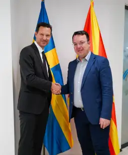 Skopje, 29 September 2025 (MIA) - Deputy PM and Transport Minister Aleksandar Nikoloski met Monday with new Ambassador of Sweden, Ola Sohlström, and briefed him on the Government's capital projects and the country's involvement in regional infrastructure projects.