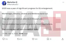The European Commission has presented its annual enlargement report, assessing the accession process of the states aspiring to join the European Union: Ukraine, Moldova, Georgia, Serbia, Albania, Montenegro, North Macedonia, Bosnia and Herzegovina, Kosovo, and Türkiye.