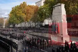 Some 10,000 armed forces veterans took part in the Royal British Legion’s march-past in London after the service, including about 20 World War II veterans 80 years on from the conflict’s end.