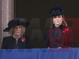 Princess Kate and Queen Camilla, both dressed in black, and other members of the royal family viewed the Remembrance Sunday service from a balcony at the Foreign, Commonwealth & Development Office overlooking the Cenotaph.