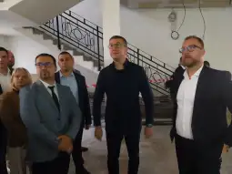 Strumica, 25 September 2025 (MIA) - Prime Minister Hristijan Mickoski alongside Minister of Culture and Tourism Zoran Ljutkov during Thursday's visit to Strumica, inspected reconstruction works at the city's old theatre, which had been stalled for seven years.