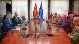 Skopje, 26 August 2025 (MIA) - Defense Minister Vlado Misajlovski met Tuesday with the Commander of NATO’s mission in Kosovo, KFOR, Major General Enrico Barduani. In a press release, the Defense Ministry said the meeting focused on the significant role of the mission in strengthening the security and stability of Kosovo and the region as a whole.