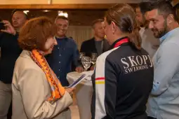 - President Gordana Siljanovska Davkova as patron of the Ohrid Swimming Marathon awarded the swimmers who won the competition according to their times recorded at the interruption of the race.