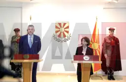 Skopje, 14 October 2025 (MIA) - Slovakia is one of the most faithful and committed supporters of our European integration and the need for EU enlargement, not only within the Visegrad Group but also through its active participation in the Friends of Western Balkans group, President Siljanovska Davkova told a joint press conference with visiting Slovak counterpart Peter Pellegrini on Tuesday.
