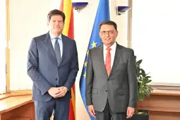 Skopje, 26 June 2025 (MIA) - Current economic trends and effects of global developments on the European and national economy, with a focus on the latest developments in the Middle East were in the focus of the meeting of National Bank Governor Trajko Slaveski and European Union Ambassador Michalis Rokas on Thursday.