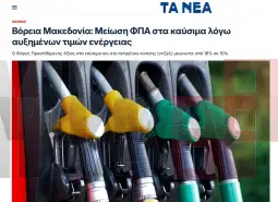 "Qeveria e Maqedonisë së Veriut njoftoi uljen e TVSH-së për karburantet, në përpjekje për të kufizuar rritjen e çmimeve të shkaktuar nga lufta në Lindjen e Mesme. Vendimi parashikon pothuajse përgjysmimin e tatimit, me qëllim mbajtjen e çmimeve në pikat e karburantit", shkruan botimi onlajn i gazetës "Ta Nea".
