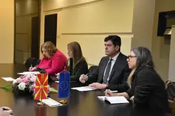 Skopje, 23 February 2026 (MIA) - Ongoing reform processes in public administration and their harmonization with European standards and good governance principles were discussed at a meeting Monday between Minister of Public Administration Goran Minchev and the European Union’s Ambassador in the country, Michalis Rokas.