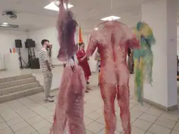 - Лајтмотивот на вечерашнава изложба е пандемијата од Ковид-19 со која бевме опседнати и допре до сите нас, животно не загрозуваше и затоа изложбата се вика Регенерација - поради начините на реакција на уметникот за тоа преживување. Затоа во нивните дела забележуваме жилети, ќибритчиња, крв, остатоци од човечки тела изработени од лисја. Некаде ќе забележиме силни пораки кои не се само двосмислени туку имаат и повеќеслојно значење.Поентата е Регенерација - културата на секого од нас во многу животни фази и препреки и премрежија може да ни биде и упориште и засолниште, но исклучителен сојузник со предизвицит. нагласи директорот на КИЦ во Белград, Васко Шутаров.