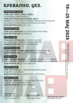Скопје, 19 мај 2025 (МИА) - Првото издание на фестивалот „БУКВАЛНО. ЏЕЗ“ почнува денеска во 17 часот во Културен центар „Буква“.