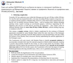 Скопје, 29 јануари 2026 (МИА) - Вицепремиерот и министер за транспорт Александар Николоски објави дека Брисел ќе донесе нова стратегија за визи, која ќе значи решавање на проблемот на превозниците што веќе четири дена ги блокираат граничните премини кон шенген-зоната.
