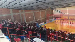 Салата со капацитет да прими до 1.500 гледачи, не е целосно исполнета, а присутна е група од околу 100 навивачи на домашниот тим со маици, шалови и знамиња на „црвено-белите“.