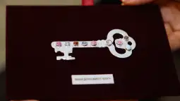 -Посебен впечаток остави долгодишниот промотор на македонскиот рубин, Деко, кој детално ја раскажа историјата на секој примерок и ја претстави изработката на уметнички клуч во кој се вградени македонски рубин, амазонит и сите други минерали од нашето тло. На прашањето на амбасадорот Ле Риголер што симболично „отвора“ овој клуч, одговорот беше: „Срцето на македонскиот народ, а ако сакаме – и тајните на нашата преубава земја“, се наведува во соопштението.
