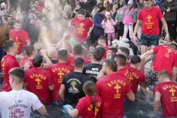 Куманово, 19 јануари 2025 (МИА) - Дваесет и двегодишниот, Борис Стефановски, студент, го извади чесниот крст од Соборниот храм „Свети Никола“. Голем број кумановци се обидоа да го извадат светиот крст во старата градска црква.