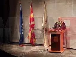 Пред аудиториумот во Битола, Игор Неделковски, ректор на Универзитетот „Св. Климент Охридски“, истакна дека со вечерашниот настан истовемено почна одбележувањето на патрониот празник на Универзитетот во овој град.