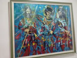 Велес, 21 февруари 2025 (МИА) - Во Ликовниот салон во Велес синоќа беше отворена изложбата на академскиот ликовен уметник и професор Милош Милосављевиќ насловена „Балканска Геометрија“ на која се претставени 17 дела, масло на платно. Воедно во другата просторија на салонот е изложено и едно негово поголемо дело, а надвор од оваа изложба, насловено „Светите воини“ кое исто тако привлече големо внимание кај велешката публика. Оваа негова слика е инспирирана од фреска од манастирот Манасије кој е задужбина на деспотот Стефан Лазаревиќ и се наоѓа во околина на градот Деспотовац во Србија, а на неа се преставени Светите воини: Свети Никита, Свети Нестор и Свети Арсениј.