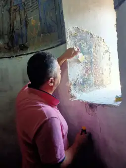 - -Со овој зафат продолжувме со истражување на ѕидното сликарство на манастирската црква „Свети Димитрија“ за откривање на оригиналниот живописи од 13 век. Ние веќе откривме делови од стариот живипис на црквата во делот на апсидата - во олтарот. Најдовме и дел од декорација. Тоа говори дека и овој дел од црквата бил живописан во 13 век. Преостанува во наредните некоку денови да истражуваме и да откриеме колку и во останатите делови на црквата е сочуван овој стар живипис од 13 век, рече конзерваторот Мукоски.