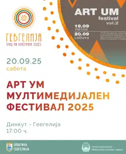 - Во Гевгелија денеска и утре се одржува второто издание на „АРТ УМ“ Мултимедијален фестивал, во организација на ЗГ „АРТ УМ 023“- Гевгелија. Фестивалот е дел од програмата „Гевгелија град на култура за 2025 година“ и ќе понуди уникатни едукативни содржини, креативни работилници, изложби и спектакуларни настапи на светски познати диџеи и уметници.