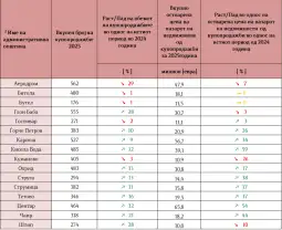 Податоците покажуваат најизразени зголемувања на финансискиот обем на пазарот во мај, а најмали во јуни 2025 година. Доминираат две категории на недвижности според бројот на купопродажби: земјоделско земјиште и шуми со 32,8 проценти и станови со 32,5 проценти од вкупниот број на купопродажби.