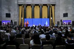 Њујорк, 27 септември 2025 (МИА) – Нашиот пат кон Брисел наликува на маратон, маратон за кој понекогош мислам дека може да се прашаме „дали го чекаме Годо“. Ние го започнавме нашиот маратон во 2005 година кога ни беше даден кандидатскиот статус. Денес често се користи синтагмата дека Европа е незавршена симфонија без Западниот Балкан, а интересот за регионот порасна пред три години кога, за жал, почна војната во Украина, рече претседателката Гордана Сиљановска – Давкова пред студентите на Универзитетот Колумбија во Њујорк каде што одржа предавање во рамки на Светскиот лидерски форум.