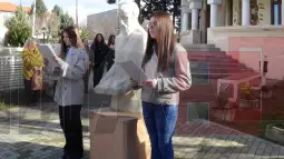По положувањето цвеќе пред бистата на патронот ученици од истоименото училиште прочитаа реферат за Свети Климент Охридски.