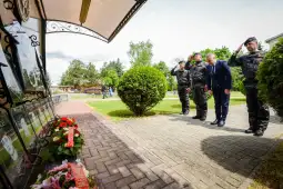 -Воедно, директорот Јанев одбележувајќи го датумот од трагичните настани во кумановско „Диво Насеље“ денеска на споменикот на трагично загинатите припадници на МВР во кругот на СВР Куманово положи цвеќе, се наведува во соопштението на МВР. хс/ев/