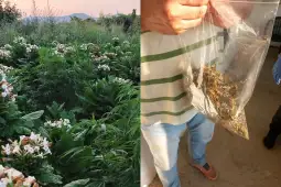 - Пронајдени и одземени биле 11 стебла од растението канабис сатива, еден репетирачки карабин, куршуми со калибар од 7,9 милиметри, една рачна бомба - постар модел, една торба и неколку ќесиња исполнети со марихуана, како и други предмети со остатоци од марихуана.