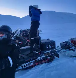 -Луѓето и кучињата, претежно Хаски, живеат во хармонија. Кучињата не ги чуваат во своите домови затоа што чувањето на топло би ја уништило природната отпорност на студ на Хаските и би ја намалило нивната способност за влеча. Според тоа што ни го кажаа локалните жители, користењето за влеча не само што не ги повредува кучињата, туку ги прави посреќни. Навистина при нашето изнајмување на санка, кучињата кои ни беа дадени, изгледаа многу пријателски и среќни кога ги врзувавме на санките. А, потоа почна вистинското доживување... На -30 степени целсиусови, поминавме 145 km со snowmobile од Лонгјир до источниот брег на Свалбард. Бела убавина која не може да се опише со зборови. Источниот брег на Свалбард е глечерски, нема услови за постојан живот на луѓе, и претставува примарно живеалиште на белите мечки. Белите мечки се големи предатори и потребнa е голема внимателност при движењето. На Свалбард заради опасност од бели мечки забрането е движење надвор од Лонгјир доколку не сте наоружан со соодветно оружје. Затоа во дивина се движи само со водич (добро наоружан), а индивидуално е препорачливо само доколку имате претходно арктичко искуство, соодветна опрема и знаете да ракувате со оружје. На излезите од Лонгјир имаше соодветни предупредувања за оваа опасност. На Свалбард живеат повеќе од 3000 бели мечки, повеќе од колку што има жители. Интересно е што белите мечки 95 проценти од времето го поминуваат во мирување и за да ја зачуваат својата енергија лежат свиткани на мразот/снегот. Патувањето на источниот брег на Свалбард го завршивме во моментите кога сонцето почна да изгрева што дополнително ни донесе нестварна убавина, ни раскажа семејството Неделковски.