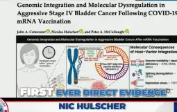 „Кај 30-годишна жена се развил рак на мочниот меур, што е исклучително ретко, во 4 стадиум, по третата вакцинација. Спајк протеинот го угасил имуниот систем. Ова беше проследено со геномска дисрегулација, односно нејзините гени за следење на туморот беа буквално исклучени. Таа имаше илјадници гени кои беа во основа дисрегулирани, гените поврзани со поправка на ДНК беа исклучени, таа имала прекин на двојната нишка во ДНК“, вели епидемиологот од Тексас, д-р Николас Халшер изнесувајќи шокантни податоци интервјуто за МИА.