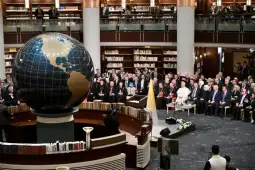 „Го пофалуваме проницливиот став (на папата) за палестинското прашање“, рече Ердоган во обраќањето до Лав XIV и политичките и религиозните лидери во претседателската библиотека во Анкара.