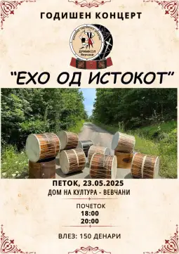 Вевчани, 18 мај 2025 (МИА) - „Ехо од истокот“ е насловен годишниот концерт на културно уметничкото друштво „Дримкол“ од Вевчани што во петок на 23 мај ќе се одржи во Домот на културата во Вевчани.