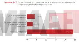 - Иако родовата еднаквост е дел од стратегиите на мнозинството спортски организации, бројките покажуваат дека жените остануваат маргинализирани на раководните позиции. Истражувањето „Родова еднаквост и инклузивност во спортот во Северна Македонија“ открива дека само 13 проценти од претседателските позиции во спортските федерации ги заземаат жени, а квоти за родова застапеност постојат во едвај 13,3 отсто од организациите. Овој феномен го потврдуваат и авторките на истражувањето, кои го посочуваат недостигот на поддршка, културните бариери и институционалните пречки како клучни фактори што ги ограничуваат жените во спортскиот сектор.