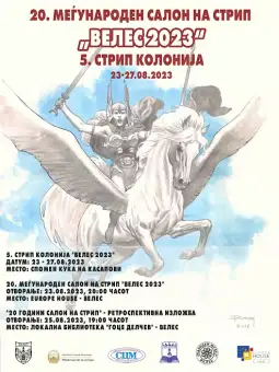 - Македонскиот стрип центар од Велес од вечер до 27 август ќе биде домаќин на 20 јубилеен Меѓународен стрип салон „Велес 2023 и 5- тата Стрип колонија.Свеченото отворање е вечер во 20 часот во Европската куќа на млади, поранешно Градско кино во центарот на Велес. Во рамки на 5 -тата стрип колонија што од 23 до 27 август ќе се одржи во Куќата на Касапови позната како Куќата на уметноста во стариот дел од Велес ќе учествуваат стрип автори Вишеградската група: Полска, Словачка, Чешка и Унгарија, како и од Србија, Косово и нашата земја.