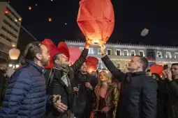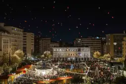 Плоштадот Коѕија пред општинската зграда каде што се наоѓа и божиќниот маркет, синоќа беше исполнет со илјадници насмеани лица на сите возрасти, кои подоцна, атинското небо го исполнија со над 3.000 хартиени фенери со нивните желби.