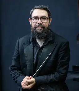 Вечерашниот концерт е под управа на диригиентот Иван Еминовиќ, роден во Скопје, со основно и средно образование во ДМБУЦ „Илија Николовски – Луј“ во Скопје. На ФМУ во Скопје се запишува на одделот за оркестарско диригирање во класата на проф. Саша Николовски – Ѓумар, каде во 2010 година дипломира со концерт во чест на проф. Коста Трпков, истовремено здобивајќи се со наградата на фондацијата „Томислав Зографски“ како најдобар студент на одделите за диригирање, композиција, музикологија и музичка теорија и педагогија.