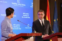 Скопје, 1 јули 2025 (МИА) – За Европската Комисија ситуацијата е јасна, доколку Северна Македонија ги исполни заложбите и го промени Уставот, што секако дека не е лесно, тогаш ќе започнеме веднаш со меѓувладината конфернција без било какви дополнителни политички условувања, порача Еврокомесарката Марта Кос, одговарајќи на новинарско прашање на заедничката прес-конференција со премиерот Христијан Мицкоски во Скопје, за барањата од Софија, освен уставни измени, да се усвојат и протоколите.