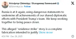 „Уште една лага од Руската Федерација. Секако, вчера имавме средба со Трамп. И секако, за Русите, тоа е неуспех ако нема скандали меѓу нас и Америка и ако напредуваме, бидејќи тие не сакаат оваа војна да заврши“, рече Зеленски како одговор на руските тврдења.