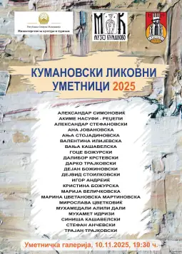 Куманово, 10 ноември 2025 (МИА) - Традиционалната изложба „Кумановски ликовни уметници 2025“ ќе биде отворена вечерва во уметничката галерија Куманово, соопштија надлежните од Националната установа Музеј Куманово. Ова е една од најстарите изложби и се одржува во чест на денот на ослободување на градот. Отворањето на изложбата е закажано за 19:30 часот.
