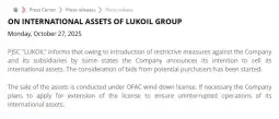 Москва, 27 октомври 2025 (МИА) – Руската нафтена групација „Лукоил“ денеска соопшти дека има намера да ги продаде своите меѓународни активи, како резултат на „воведувањето рестриктивни мерки против компанијата и нејзините подружници од страна на некои држави“.